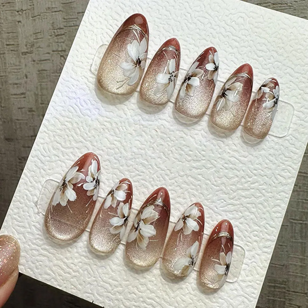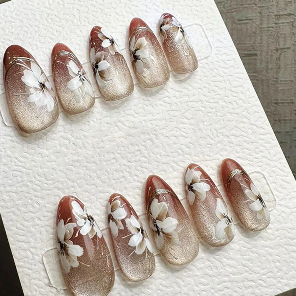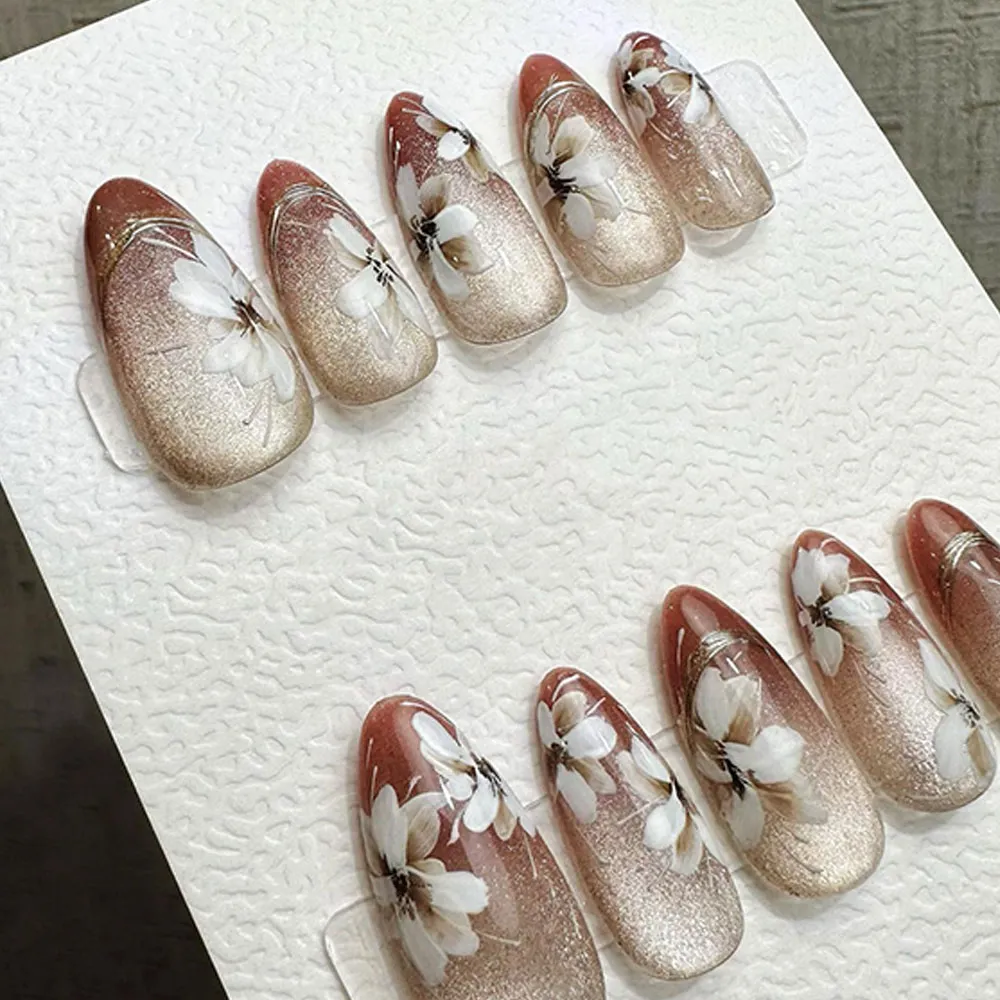 Mysterious, magnetic, and utterly captivating — the Autumn Blossom Cat Eye Press On Nails are a handcrafted masterpiece that blends the enchanting depth of cat eye gel with the warm, romantic beauty of autumn florals.