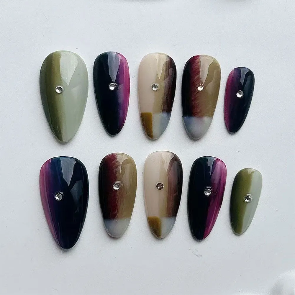The nails were gorgeous! I got a lot of compliments on them, "Those are press-ons???" Yes mam'!! There was a small sizing issue, but the Dorynail team was swift, helpful, and kind enough to remake two nails! I would recommend buying from this shop again, in fact I've ordered 3 other sets previously and will continue to do The sets do come with a small kit that has a cuticle pusher, glue, sticky tabs, an alcohol pad, and files. However, I'd suggest finding a separate nail glue/sticky tabs you like for "longevity" if you're experiencing that issue. It's not the nail's fault, most likely just application or what you're using to stick them on. They are definitely reusable! 5/5, 10/10!