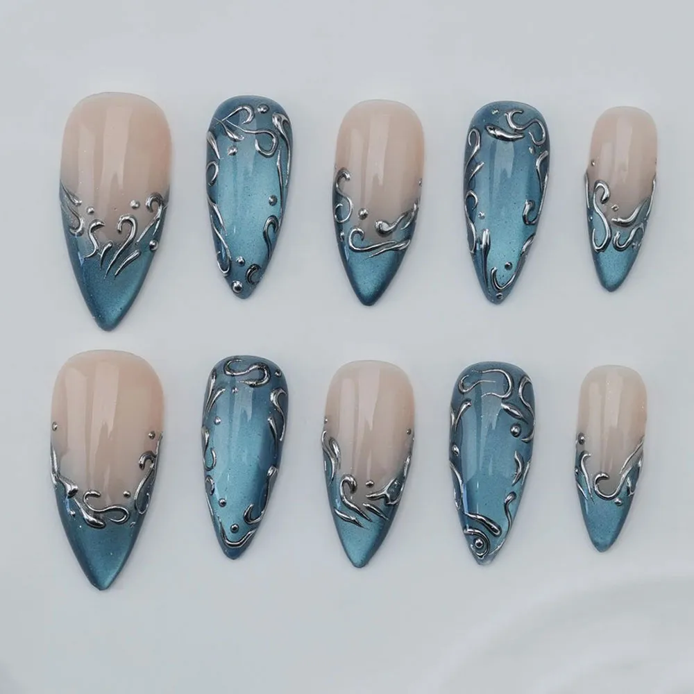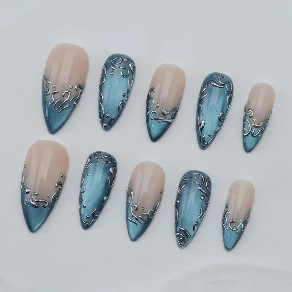 These press-on nails make a wonderful gift for her and are a perfect match for birthday parties, New Year’s Eve celebrations, night outs, holiday galas, date nights, or any occasion that calls for a look that is bold, celestial, and unmistakably party-ready. Style them with a deep blue sequined dress, a sleek navy co-ord, a shimmering silver ensemble, or your most glamorous and festive party outfit — these press-ons bring a surge of blue cat eye magic and starlit sparkle to every look.