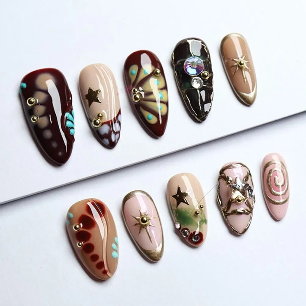 These press-on nails are a perfect match for birthday celebrations, festival fashion, boho weddings, gothic art events, night outs, or any occasion that calls for a look that is deeply personal, wildly creative, and impossible to replicate. Style them with a flowing boho maxi dress, a dark feminine co-ord, layered earthy jewelry, or your most expressive and fearless outfit — these press-ons bring a rush of artistic, dark bohemian energy to every look.