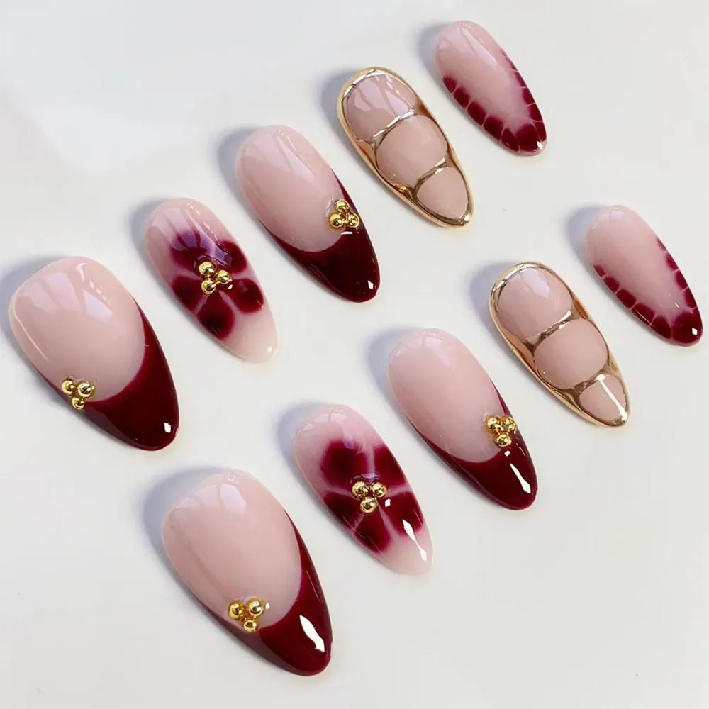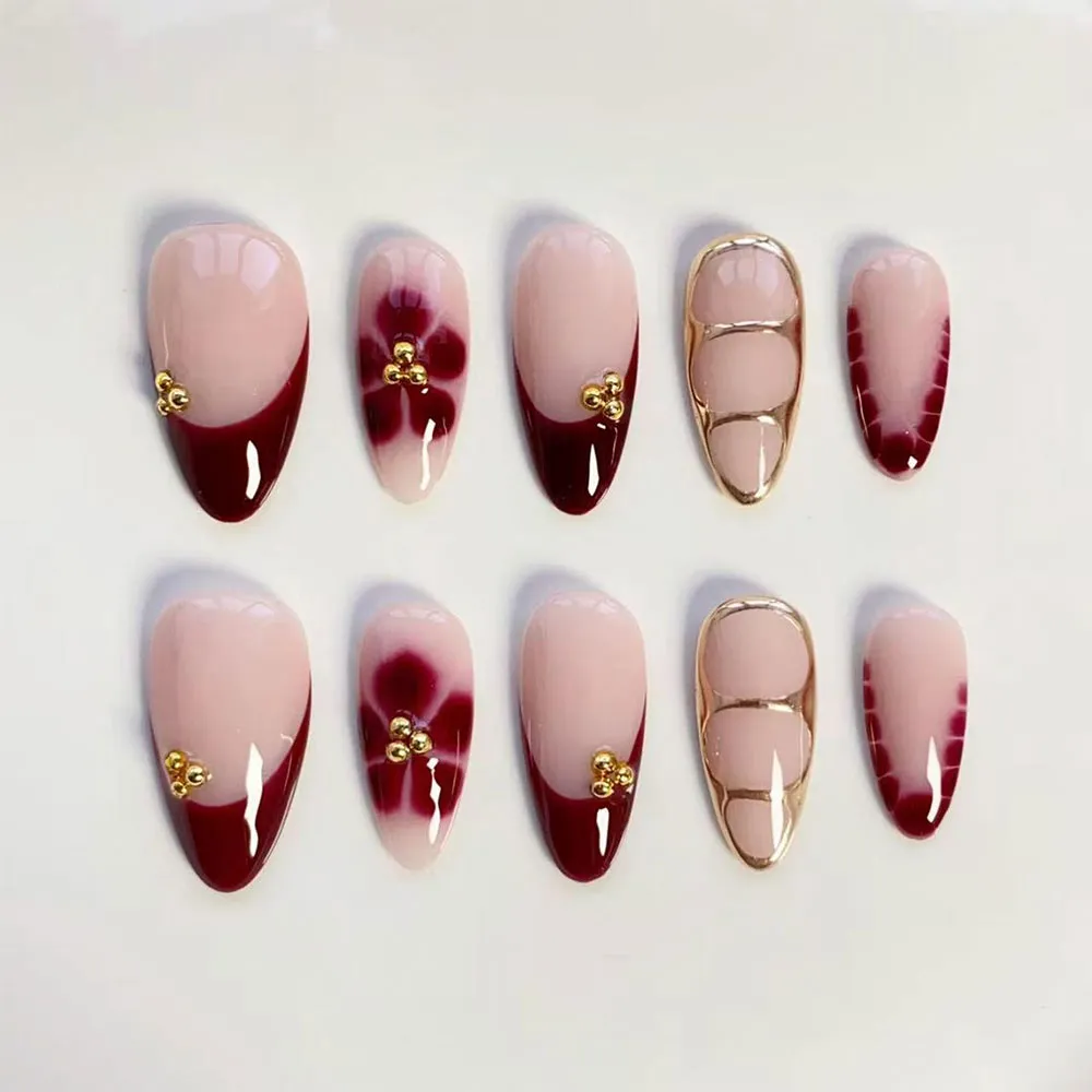 Bold, luxurious, and dramatically beautiful — the Burgundy Bloom Press On Nails are a striking statement piece for the woman who wears elegance like a second skin.