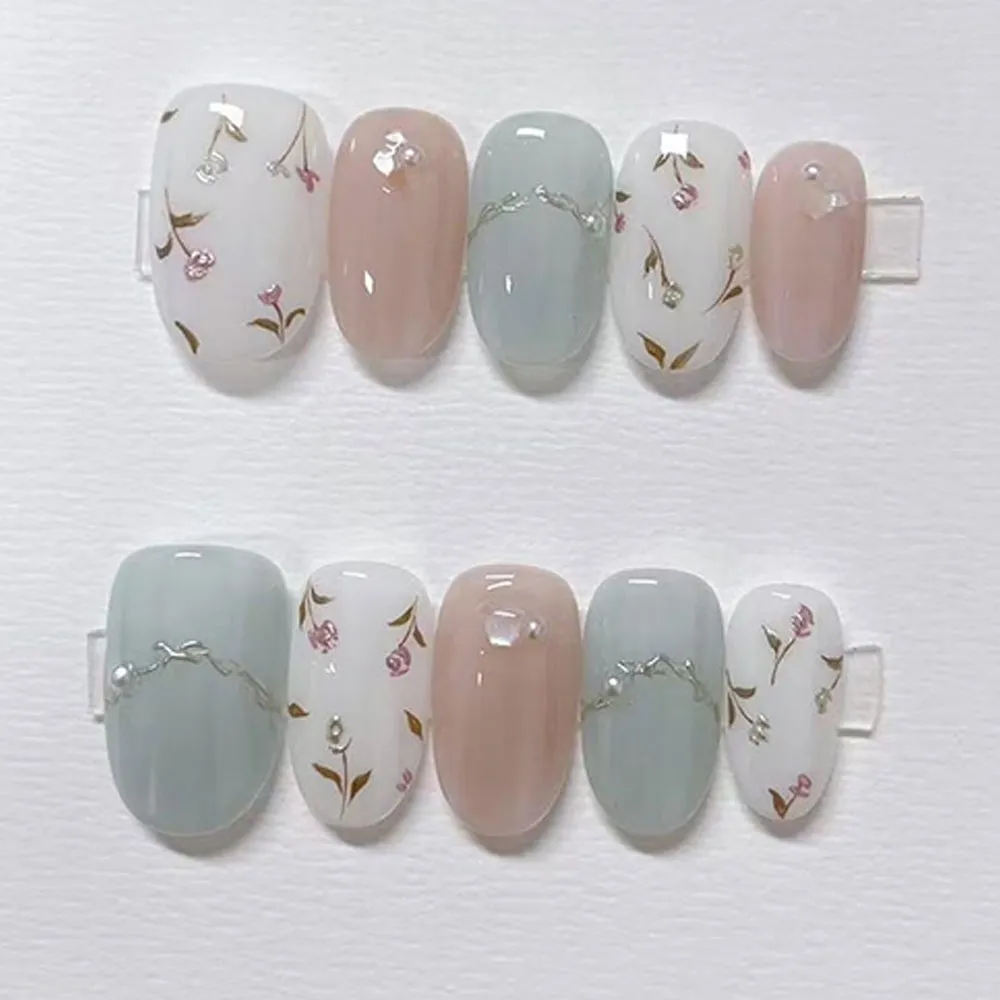 These press-on nails are a dream match for spring outings, picnic dates, baby showers, bridal events, birthday teas, or any occasion that calls for something soft and utterly feminine. Style them with a flowy cottagecore dress, a pastel knit, or a classic white blouse — these press-ons bring an instant touch of whimsy and grace to any outfit.