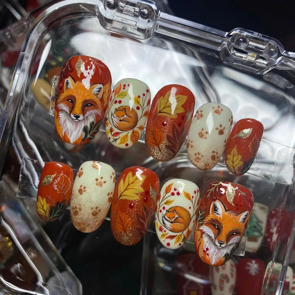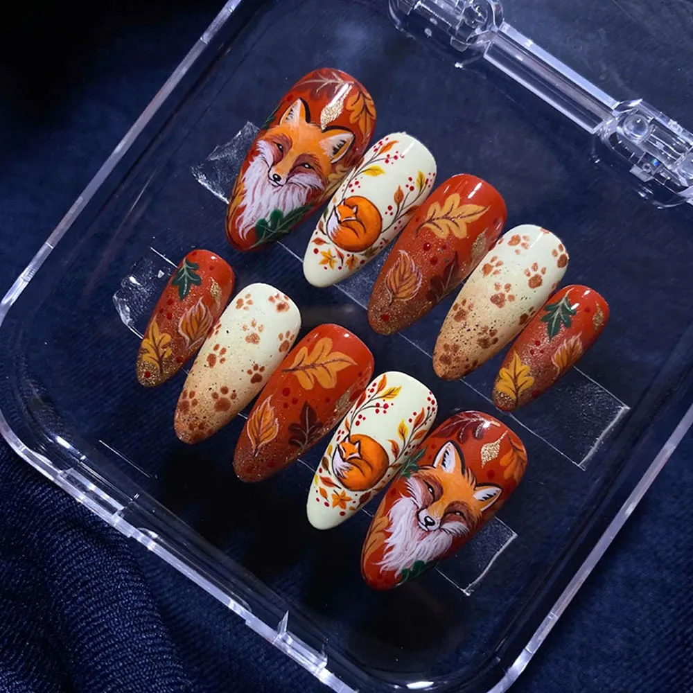 Bring the magic of the autumn forest to your fingertips — order these Fox Fall Press On Nails today and let your nails tell a story worth looking at!