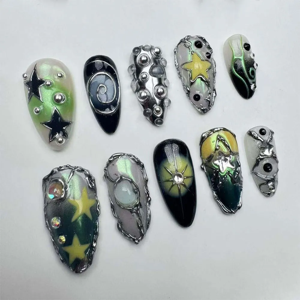 Sophisticated, celestial, and deeply luxurious — the Japanese 3D Gold Chrome Press On Nails are a handmade celebration of refined Japanese nail artistry, crafted for the woman who finds beauty in the most exquisite details.