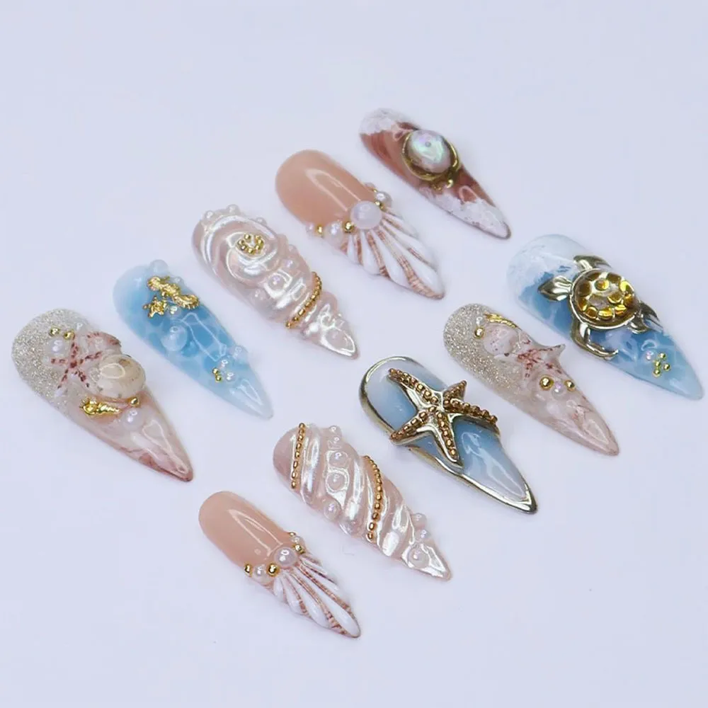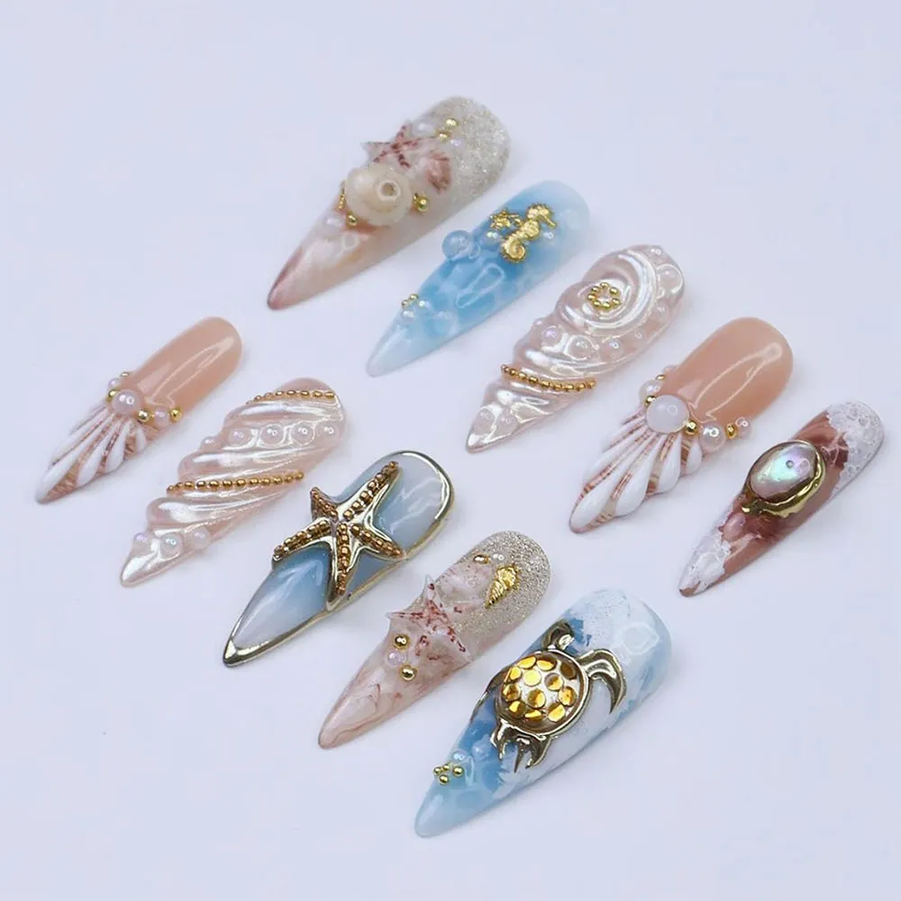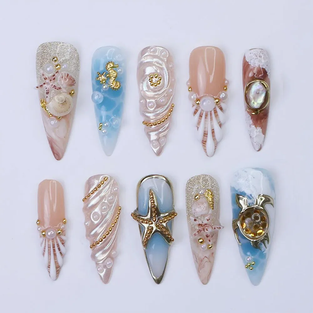 Wear the treasures of the ocean — order these luxury seahorse starfish fake nails today and adorn your fingertips with the finest the sea has to offer.