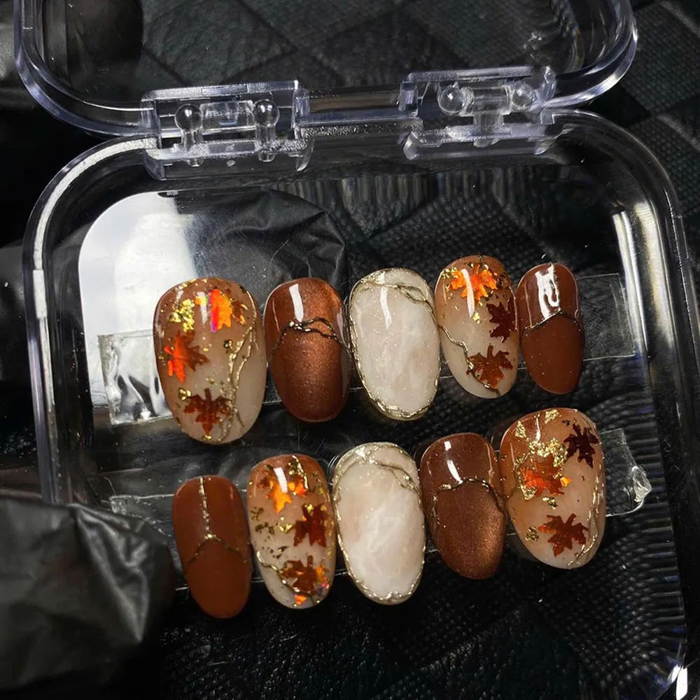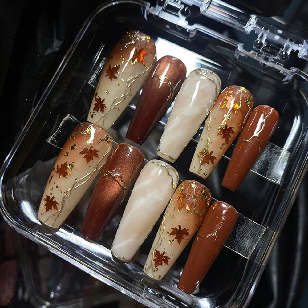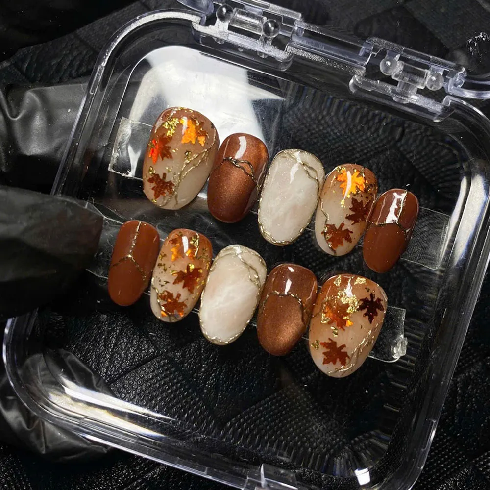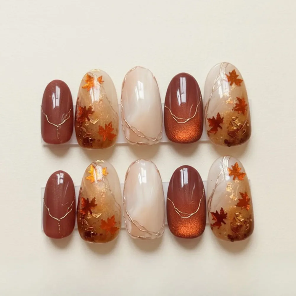 Wear the poetry of autumn on your hands — order these Maple Leaf Marble Press On Nails today and let your manicure speak in quiet luxury!