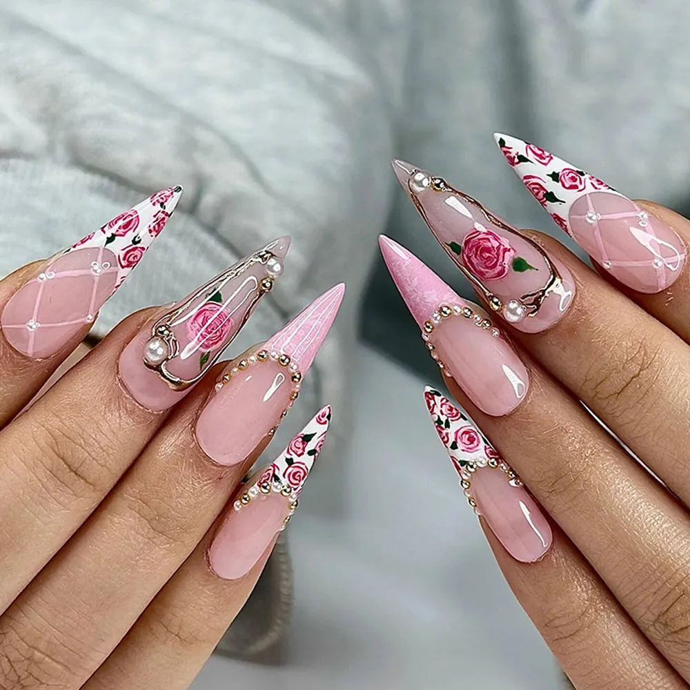 These fake nails are made for the hopeless romantic in all of us. They are the ideal choice for Valentine’s Day, bridal showers, engagement parties, garden weddings, or any occasion where you want to feel like the main character. Style them with lace details, satin ribbons, pearl jewelry, or soft pastel outfits for a look that is completely cohesive and utterly dreamy. These press-ons also make a breathtaking gift for someone who loves all things feminine and floral.