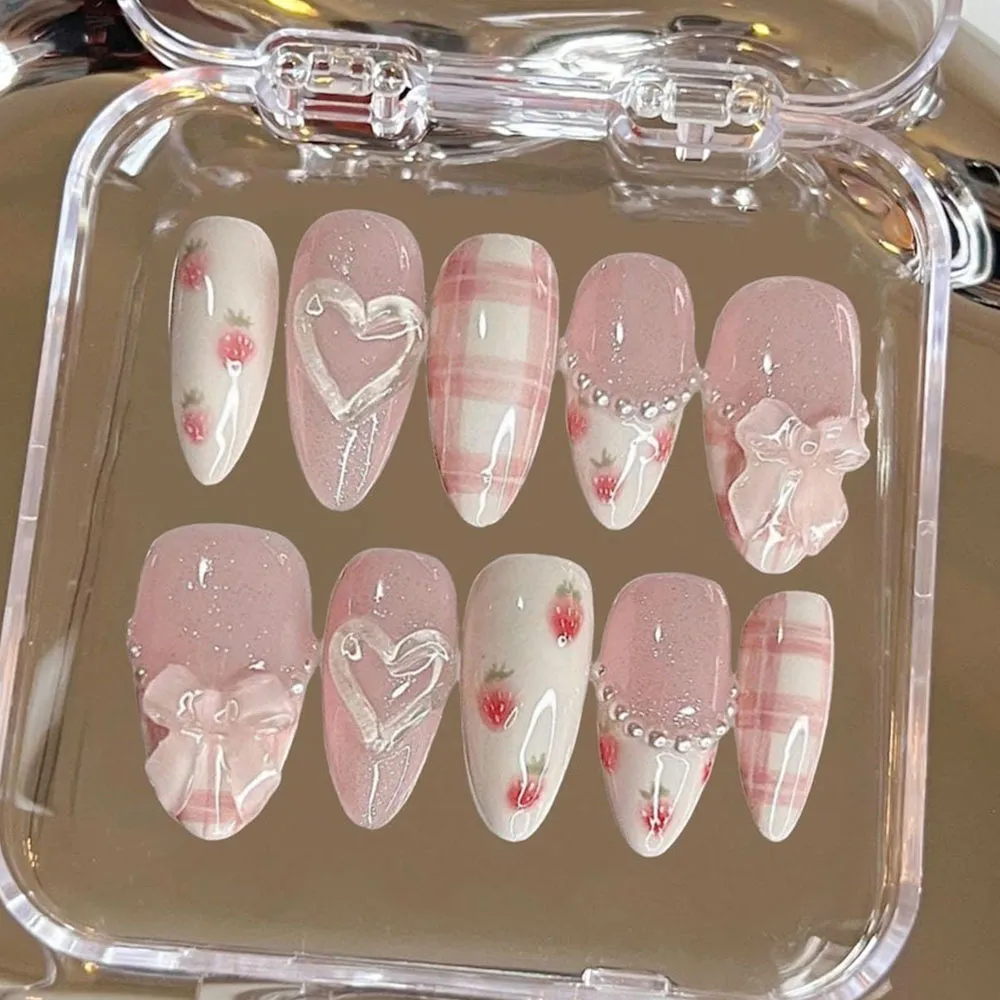 These press-on nails are a perfect match for birthday parties, summer picnics, café dates, kawaii fashion events, Valentine’s Day, or any occasion that calls for a look that is as sweet as it is stylish. Style them with a strawberry-printed dress, a pastel pink co-ord, or your favorite cottagecore outfit — these press-ons bring an instant burst of fruity, feminine joy to every look.