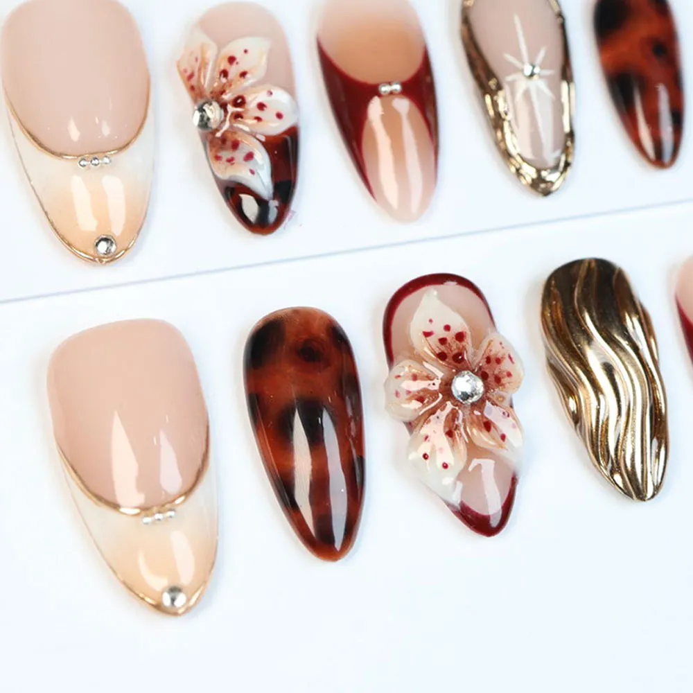 Bold, artistic, and effortlessly sophisticated — the Tortoise Shell 3D Press On Nails are a stunning fusion of nature-inspired pattern and botanical artistry, crafted for the woman who wears confidence like a signature accessory.